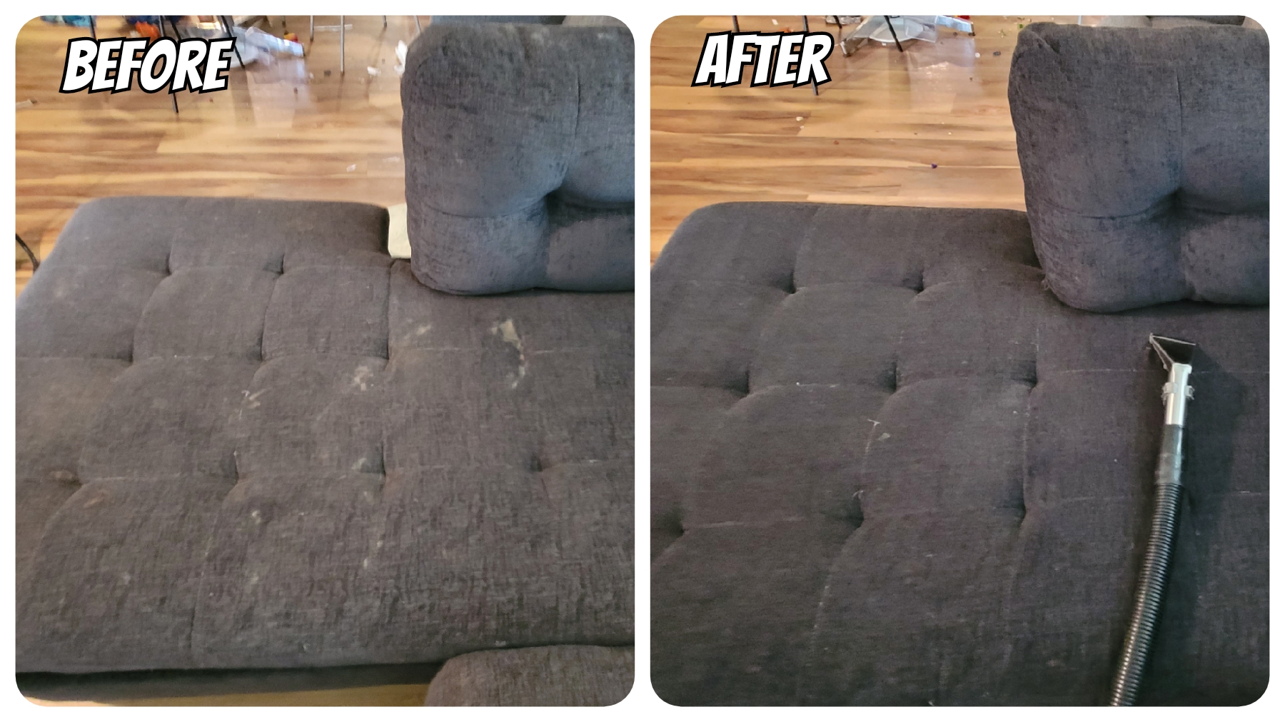 We use a targeted Low-Moisture Steam Cleaning process designed specifically for upholstered furniture. This technique delivers the deep-cleaning power of steam while using minimal water, which is critical for ensuring a fast dry time and preventing fabric damage or shrinkage. We utilize specialized low-moisture tools that significantly speed up drying and prevent common issues like moisture stains (water rings).