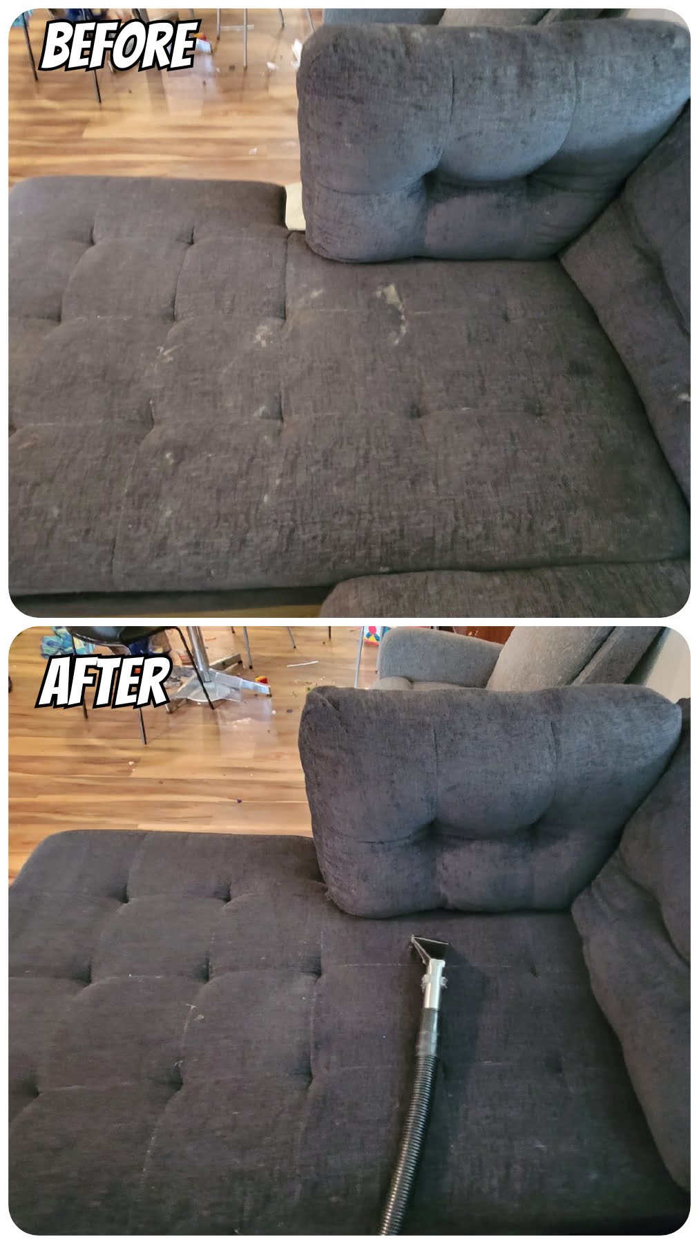 Warning: Our upholstery cleaning may make you permanently attached to your furniture!